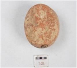 | Description / विवरण | A fragment of terracotta sling ball, well baked, smooth surface and surfae was treated with slip in red colour. |