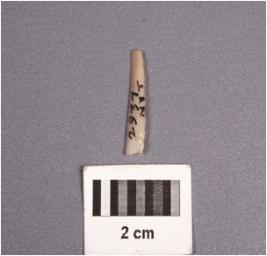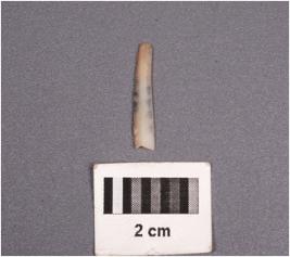 | Description / विवरण | A chalcedony blade with single mid-ridge on dorsal surface, triangular section, proximal end broken, and use-wear marks along the cutting edges. |