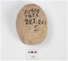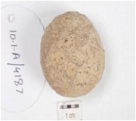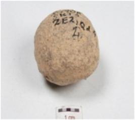 | Description / विवरण | A ball made of stone, oval in shape and rough surface. |