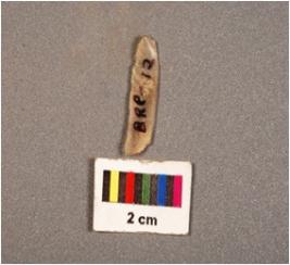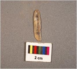 | Description / विवरण | Parallel sided chalcedony blade, two ridges on dorsal, use wear edges, diffused bulb on proximal ends. |
