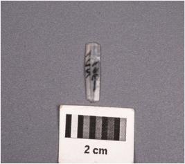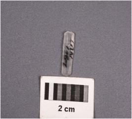 | Description / विवरण | A chalcedony blade with two ridges on dorsal surface, trapezoidal section, proximal end broken and use-wear marks along the cutting edges. |