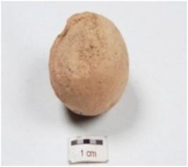 | Description / विवरण | A fragment of terracotta sling ball, smooth surface, well baked and surface was treated with wash in dull red colour. |