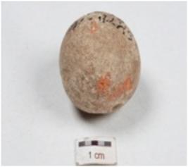 | Description / विवरण | A handmade terracotta sling ball, round in shape, uneven surface, well baked and surface was treated with wash in red colour. |