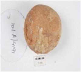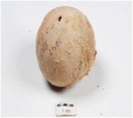 | Description / विवरण | A handmade terracotta sling ball, round in shape, well baked and surface was treated with slip in dull red colour. |