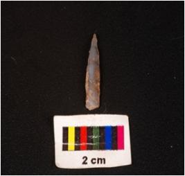 | Description / विवरण | Point with a ridge on dorsal surface diffused bulb on ventral surface, backed on left lateral side along distal end on dorsal surface, use-wear marks on working edge, core given heat treatment, prepared platform on proximal end. |