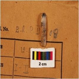 | Description / विवरण | Pen knife shaped chalcedony blade, single ridge on dorsal, use wear edges, diffused bulb on proximal end, low heated. |