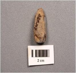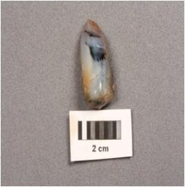 | Description / विवरण | A core fragment made on chalcedony, sixth flake scars, prepared platform, cortex remains on one side. |