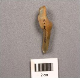 | Description / विवरण | A core fragment made on chert with blade scars, painted distal end. |
