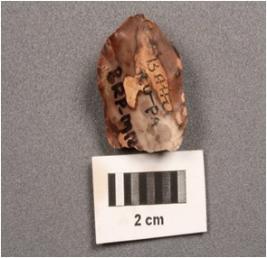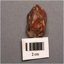 | Description / विवरण | A end-scraper made on jasper with used layer marks on edges, flake scars on surface. |