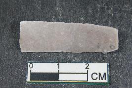 | Description / विवरण | Fragment of blade with two dorsal ridges and smooth surface. |