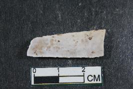 | Description / विवरण | A fragment of blade having two dorsal ridges and smooth surface. |