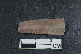 | Description / विवरण | A fragment of blade having two dorsal ridges and smooth surface. |