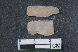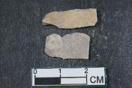 | Description / विवरण | Fragments of blades with two dorsal ridges having smooth surface. Shorter fragment has length equivalent to 1.8 cm. |
