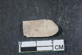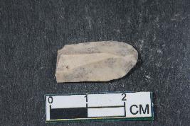 | Description / विवरण | Fragment of a blade with two dorsal ridges and a bulb of percussion on ventral side having smooth surface. |