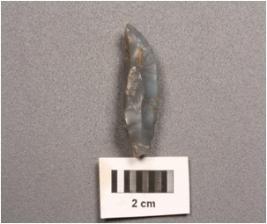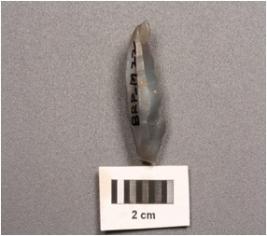| Description / विवरण | A point made on chalcedony core with blade scars, prepared platform. |
