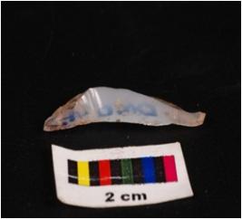 | Description / विवरण | Blade with one striaght left and another concave right working end, single vertical ridge on dorsal surface, concave ventral surface intact promximal & distal end. |