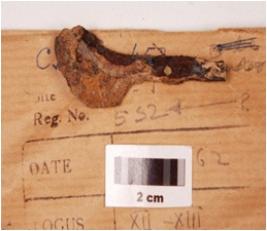 | Description / विवरण | A fragment of iron nail uneven surface and rusted. |