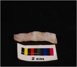 | Description / विवरण | Parallel sided blade, with two sharp, weavy cutting edge, vertical ridge on dorsal surface weavy concave ventral surface, intact proximal end, broken distal end. |