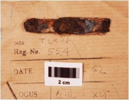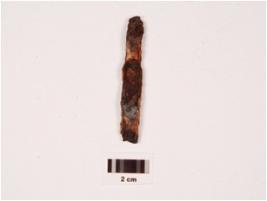 | Description / विवरण | A fragmented iron nail, uneven surface and rusted broken tip. |
