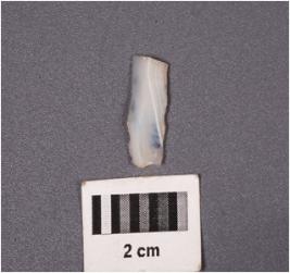 | Description / विवरण | A parallel sided microlithic blade made on agate with a ridge on the dorsal side and natural lines, diffused bulb on the ventral side, use-ware marks on cutting edges. Triangular in section. |
