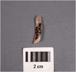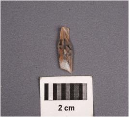 | Description / विवरण | A chalcedony blade with single mid-ridge on dorsal surface, triangular section, diffused bulb on ventral surface and use-wear marks along the cutting edges. |
