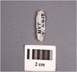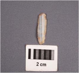 | Description / विवरण | A chalcedony blade with single mid-ridge on dorsal surface, prepared platform, diffused bulb on ventral side and use-wear marks along the cutting edges. |