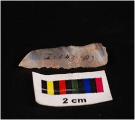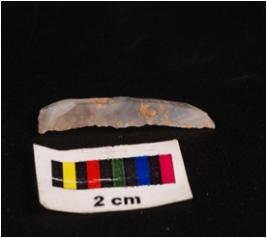 | Description / विवरण | Parallel sided blade with, two parallel sharp working edges, broken, pointed proximal and, intact distal end, double rigee on dorsal surface, concave ventral surface. |