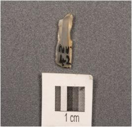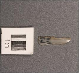 | Description / विवरण | Chalcedony parallel sided blade with double ridge, trapezoidal section, used wear mark on cutting edges. |