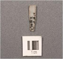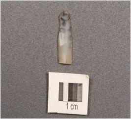 | Description / विवरण | A chalcedony parallel sided blade with a single ridge, triangular section, used wear mark on cutting edges. |