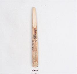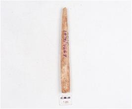 | Description / विवरण | Fragment of a point made on bone, pointed one end, broad other end, plano convex in section, partly broken and polished surface. |