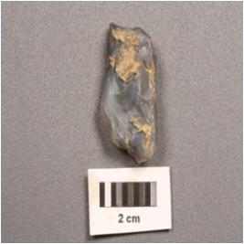 | Description / विवरण | A core fragment made on chalcedony with blade scars, prepared platform on proximal end. |