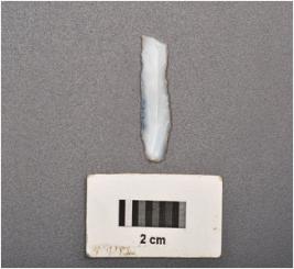 | Description / विवरण | Parallel sided microlith blade made on chalcedony with mid ridge on dorsal and triangular in section. Use wear marks on cutting edges and ripple marks on ventral. |