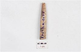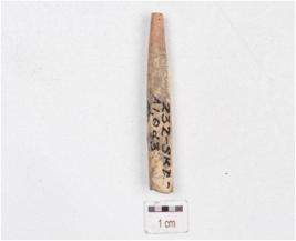 | Description / विवरण | Fragment of a bone point, broken along both the ends and polished surface. |