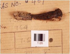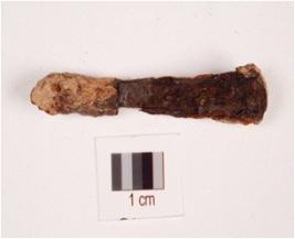 | Description / विवरण | A broken piece of iron nail, broken from both end and surface is rusted. |
