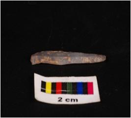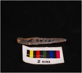 | Description / विवरण | Intact parallel sided blade, with weavy, sharp lateral working edge, two long flake scars on dorsal surface, concave ventral surface. |