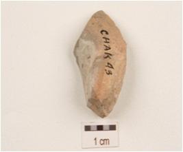 | Description / विवरण | A flake made of chert, use wear marks on edges, diffused bulb on ventral side and irregular in shape. |