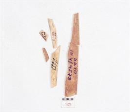 | Description / विवरण | Fragment of a scraper middle on bone, broken into many pieces and highly polished surface. |