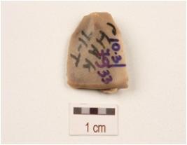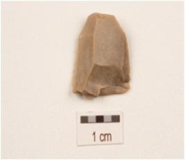 | Description / विवरण | A flake made on chert, uneven surface and diffused bulb on ventral side. |