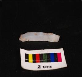 | Description / विवरण | Paralle sided blade with two straight sharp edge, dorsal surface with flake scars, concave ventral surface, broken from proximal & distal end. |