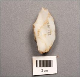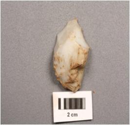 | Description / विवरण | A blade core made on chalcedony with blade scars, used wear marks on cutting edges. |