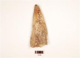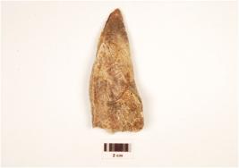 | Description / विवरण | A fragment of bone point inarrow from top and pointed, broad bottam, partly mended and rough surface. |
