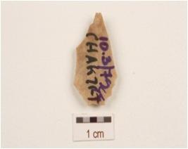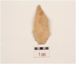 | Description / विवरण | A flake made on chert, diffused bulb on ventral side and use wear marks on edges. |