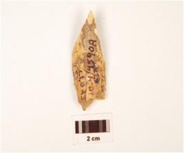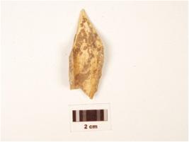 | Description / विवरण | A fragment of bone point, pointed top, hollow from inside, polished, off white in colour and partly broken. |