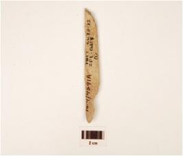 | Description / विवरण | A fragment of bone point, broken ends, channel inside and white in colour. |