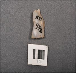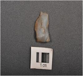 | Description / विवरण | Chalcedony stone flake with prepared platform and flake scars on dorsal. |