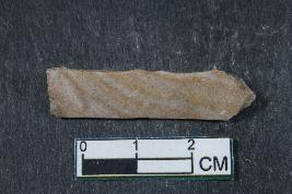 | Description / विवरण | Fragment of blade with two dorsal ridge having smooth surface. |