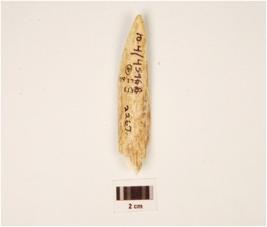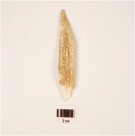 | Description / विवरण | A fragment of bone point, pointed top, curved surface, partly broken, off white in colour and proper edges. |