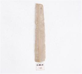 | Description / विवरण | A blade made on chert, mid ridge on dorsal side, irregular retouch on edges and diffused bulb on ventral side. |