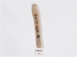 | Description / विवरण | A blade made on chert, mid ridge on dorsal side, diffused bulb on ventral side and use wear on edges. |