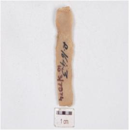 | Description / विवरण | A blade made on chert double, ridge on dorsal side, irregular retouch marks on edges and bulb on ventral side. |